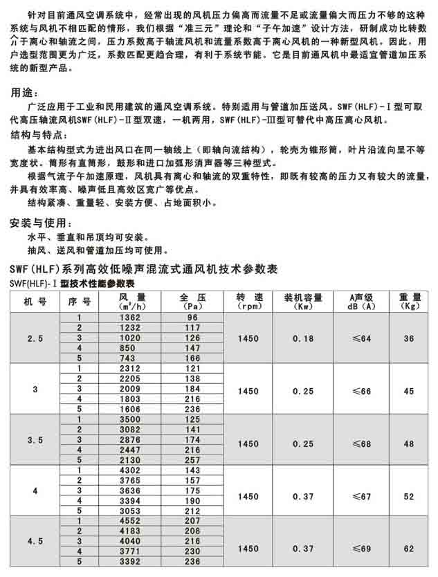 1、HTF型消防高溫排煙風機 2、HTF(PYSWF)型高溫排煙混流風機 3、HTFC消防通風兩用柜式離心風機 二、混流通風機系列 1、SWF(HLF)型混流通風機 2、SWF-IV(HL3-2A)型低噪聲節(jié)能混流通風機 3、SWF-V(SJG)型斜流(混流)通風機 4、HLF-6型低噪聲節(jié)能混流風機箱 三、低噪聲軸流通風機系列 1、T35-11(T40-11)型軸流通風機 2、DZ型低噪聲軸流通風機 3、DFBZ型壁式軸流通風機 4、SDF型隧道式軸流通風機 5、DWEX系列邊墻風機 四、屋頂通風機系列 1、DWT-I型軸流式屋頂風機 2、DWT-II(III)型離心式屋頂風機 3、DWT-IV型無動力屋頂風機 4、RTC低噪聲離心式鋁制屋頂風機 |