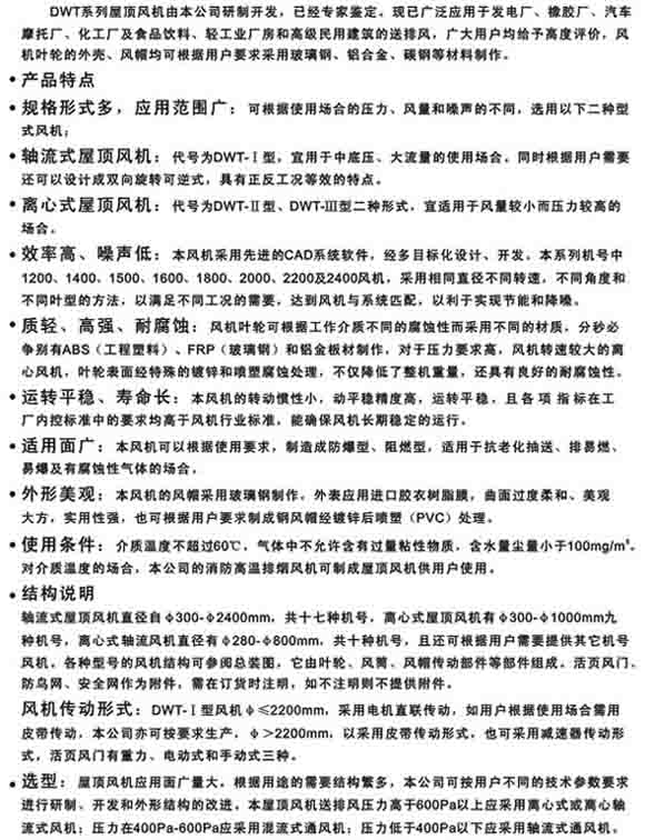 產(chǎn)品名稱:DWT-I型軸流式屋頂風(fēng)機(jī)