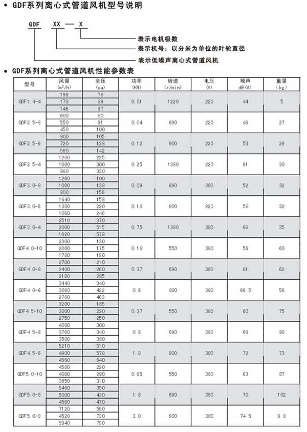 產(chǎn)品型號:GDF系列離心式管道風機